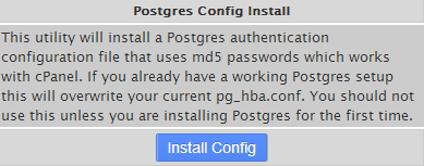 After it is installed, we will show you how to configure Postgres; which will add phpPgAdmin to cPanel. By using phpPgAdmin, you can easily access and modify the tables in your PostgreSQL database.
