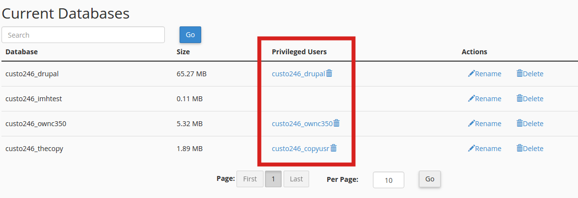 This article helps you in being able to identify what users are assigned to particular databases on your hosting account via the cPanel.